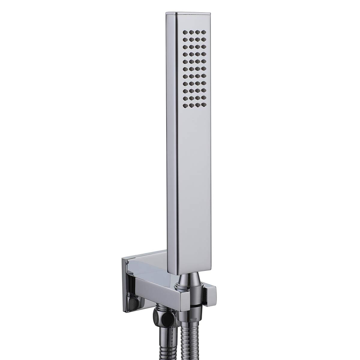 Square Solid Brass Hand Held Shower Head With Wall Connector Holder and Hose Set (Chrome)