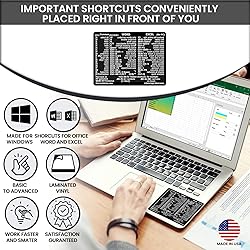 - 💻SYNERLOGIC Word/Excel Reference Keyboard Shortcut StickersYour Synerlogic Essential Shortcuts Sticker is an accurate, comprehensive list of keyboard shortcuts that you need. It contains a list of shortcuts for any PC and fits easily on the bottom corner of your laptop so you can quickly look down and read it. It is perfect for the beginner who wants to learn how to use their Word and Excel and save time by having important keyboard shortcuts at their fingertips. Designed by SYNERLOGIC, the sticker is made of military-grade waterproof vinyl and is more durable and convenient than a printout of the shortcuts.💻Convenience At Your Fingertips Are you looking to increase your productivity or simply want to learn how to use your shiny new laptop like a pro? Having the most essential keyboard shortcuts in front of you will help you quickly learn the ins and outs of your computer. Whether for business or personal use, you’ll be able to easily navigate and operate your laptop so that you can work faster and smarter.💻Perfect For LearningIf you have a new Laptop and want to learn how to use it like a pro, this sticker is for you! You’ll have the shortcuts right in front of you, so you can learn and memorize them without having to look them up or print them out. You’ll be using your computer like a pro with the Synerlogic Reference Keyboard Shortcut Sticker.IT MAKES A PERFECT GIFT❣️Copyright ©2021 Design and production by Synerlogic Electronics, Bay City, MI, San Diego, CA and Boca Raton, FL, United States. All Rights Reserved.