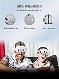 SUPER FIT: Compatible for Meta Quest 2 VR headset, Upgrade Head Strap Replacement for Quest 2 Elite Strap, ensures 100% match, premium ergonomic strap increases balance, support and stability while playing VR games. UPGRADE YOUR EXPERIENCE: Flexible brace supports your head for longer, more comfortable playtime, our headstrap is weighted just right so that the headset is no longer front-heavy, it makes a huge difference to the VR experience on the Meta Quest 2. ENHANCED COMFORT: More than a piece of plastic, our head strap integrates comfort padding with improved weight distribution, ensures better comfort and support while wearing the headset during immersive gameplay. HIGH-QUALITY MATERIAL: We use high-quality ABS material, way more stable and more durable than the Elite version, and soft breathable foam padding, to help reduce head pressure, avoid VR headset slip while playing. EASY TO USE: Our head strap features a size adjustment dial in back that makes it a cinch to switch the headset between players, the fit wheel easily adjusts tightness with a quick twist, makes your virtual reality experience even better.