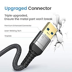 REINFORCED SR CABLE JOINT:AINOPE USB 3.0 extension cable with test of 20,000+ bend, the special SR design makes the cable joints more durable. The flexible and wear-resistant armor nylon braided material offers stronger protection. The Included sticky buckles helps to shorten the length and keeps the USB 3.0 extension cable in an organized manner, no tangling worries and effectively prolong the service life. UPGRADED CONNECTOR:This USB extension cable with all-metal shell and aluminum alloy connector, provides you fancy texture with good hand-feeling, and ensure the extreme durability. Also constructed with multiple layers of shielding to minimize interference, corrosion-resistant , effectively prolong the cable service life. USB3.0 FAST CHARGING & DATA SYNCING:Charging and data transmission two in one, Our USB 3.0 extension cable is 10X faster than USB2.0 cable, also, this USB 3.0 extension cable backwards compatible with USB 2.0 and USB 1.1 standard devices UNIVERSAL COMPATIBILITY:You can using this cable to extends your usb connection to your computer, as well as a variety of USB peripherals such as Hubs, Printers, Card Readers, Bluetooth Adapters, USB Flash Drives, Scanners, Hard Drives, Mouse, Keyboard without any hysteresis or loss of data. WORRY-FREE SERVICE: If you have any questions about our product, please feel free to contact with our reliable customer service, we will reply you within 24 hours. Package: USB 3.0 Extension Cable Cable*2