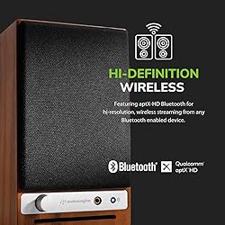 - Introducing the Audioengine A2-HD (HD3), a premium choice for discerning audiophiles seeking unparalleled sound quality in turntable speakers, computer speakers, and studio monitors. Designed by Audioengine, a leader in the audio industry, these speakers offer a refined listening experience for music lovers, concert goers, and studio musicians alike. With a compact form factor, they serve as excellent speakers for computer desktops, seamlessly fitting into any home or studio setup. The A2-HD boasts a range of advanced features tailored for superior sound performance. Equipped with Bluetooth aptX-HD technology, these powered speakers ensure wireless audio streaming with exceptional clarity and depth. The inclusion of a USB input and 24-bit DAC elevates your digital music to new heights, delivering pristine audio reproduction that rivals traditional wired connections. For those who appreciate the tactile experience of classic audio equipment, these speakers come with a headphone jack and RCA input, providing versatile connectivity options for your record player or other analog devices. Crafted with precision, the Audioengine A2-HD speakers feature elegant wood cabinets available in both wood grain and high gloss paint finishes. This aesthetic appeal complements any décor, making them not just audio equipment but a stylish addition to your space. Their compact size and bookshelf design make them ideal bookshelf speakers, fitting effortlessly into any room setup, whether as speakers for your monitor or as part of a more extensive home audio system. The A2-HD is more than just a set of speakers; it's a gateway to an immersive audio experience. Whether you're mixing tracks as a studio musician or simply enjoying your favorite vinyl, these speakers deliver the performance you demand. Experience the difference with Audioengine and elevate every listening session to a concert-like experience with these outstanding speakers for record players and more.