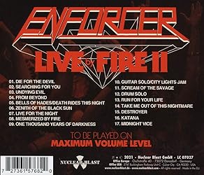 - Live By Fire II lets you experience ENFORCER up close and at its peak, and impressively documents the band's steady advance to international success. At the same time, it also serves as a collection of all the heavy metal anthems that ENFORCER has already created in their five studio albums so far! From the speed metal attacks of Destroyer, Searching For You Midnight Vice to audience craters like From Beyond, One Thousand Years In Darkness; and Take Me Out Of This Nightmare the enthusiasm of fans and the powerful sound of Live By Fire II make the album a captivating and entertaining listening experience. The physical formats of the album will include in-depth booklets, including a tour program, the liner notes, and lots of photos compiled and edited by singer and guitarist Olof Wikstrand and who will have the ENFORCER tours to the albums From Beyond and Zenith in the years between 2015 and 2020. Live By Fire II will be released as Gatefold 2LP with 16-LP booklet, CD with 28-page booklet and digital.