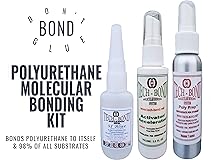 - Polyurethane is everywhere. It is one of the most common plastics. With the Bonding Poly Process (Process) you can quickly, easily and permanently repair polyurethane. The many characteristics of polyurethane, can make it hard to distinguish. It can be soft or hard, rigid or flexible. It is in everything from mattresses to roller blade wheel. For this reason, when bonding Polyurethane, the most important consideration is to ensure that you have a versatile adhesive. Because polyurethane can be soft or hard, stiff or flexible and can be in and around virtually anything, a surface insensitive bonding agent, that can take on the characteristics of whatever you are bonding it to, is imperative. Polyurethane is made from isocyanates and polyols. Much like other poly’s, it has a lower surface energy, that makes it harder to glue polyurethane, no matter the form. Fortunately the Process transforms what would be a strictly superficial ‘sticky’ glue join, into a substrate deep molecular meld. Glue joins are exposed and are not permanent. The Process uses the laws of chemistry and physics, to form covalent bonds between the monomers and polymers of each surface. Economy Poly Kit One 8-gram bottle of SI Blue (100 cP) or SI Black (1500 cP) Surface Insensitive (SI) Structural Cyanoacrylate (SCA). One 1/2 oz bottle of Activator/Accelerator (AA). One 1/2 oz bottle of Poly Prep. Poly Kit One 20 gram bottle of SI Blue. If you choose SI Black or SI Green, the kit comes with a one ounce bottle. One 1-oz bottle of Activator/Accelerator (AA). One 1-oz bottle of Poly Prep. Spare cap and nozzle. Poly Plus Kit One 2-oz bottle of a Surface Insensitive (SI), Structural Cyanoacrylate (SCA). One 2-oz bottle of Activator/Accelerator. One 80 ml bottle of Poly Prep. Spare cap and nozzle. Ultra Poly Kit Four 2-oz bottles of a Surface Insensitive (SI) Structural Cyanoacrylate (SCA). One 8-oz bottle of our Activator/Accelerator (AA). One 250-ml bottle of Poly Prep. Four spare caps.