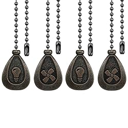 【Packing & Excellent Quality】: Including 4pcs bronze pull chains (12 inches/each), Zinc alloy and copper material, this fan pull chain extender is much more durable & not easy to rust. 【Easy to Use】: Contains two different decorative pendants, you will easily know which is the fan switch and which is the light switch, and you can easy to cut or connect with extension to achieve the desired length. 【Perfect Design】: Retro style design, suitable for all kinds of ceiling fan, elegant shape and classic colors, make your home decoration more beautiful, highlight your personality and taste. 【Widely Applications】: The ceiling fan pull chain set suitable for ceiling fan, ceiling light fixtures, bedside lamp and other occasions, they can be used to replace broken fan pendant, great for home decoration, enrich color and beautify your home environment. 【Our Guarantee】: We will provide the best product and service to each customer. Your satisfaction is our aim and motivation. Please contact us if you have any problem, we will do our best till you satisfied. No risk to buy.