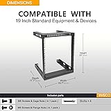 SIZE: Width: 19.7”, Depth 17.7”, with Height 25" (12U), also other option 4U, 6U, 9U, 15U, 18U are available. MATERIAL: Heavy-duty, SPCC cold-rolled steel open frame construction can safely support up to 180 lbs. (80 kg)rack mount equipment. The black RAL9005 powder coat finish makes this 12U rack resistant to scratching and rusting, Matte black is usually a safe choice for recording studio, gaming room, Hifi room, home theater, conference room, garage room, study room, weak current room & communication room. VERSATILE: With 80 kg load capacity, this versatile wall rack series is ideal for electronics & equipment gear like AV, TV, NAS, DATA, server, internet router, amplifier, hard recorder, computer, and video game console like PS5 X-box. INSTALLATION: Easy assembly according to instruction. Comes in one box with safely packed rack parts and relevant accessories of M6 screws cage nuts and bolts. APPLICATIONS: This RIVECO network rack series is compatible with EIA-standard. Side cage nuts holes installation distance is 470 mm, ideal for installing patch panels and other network equipment in secure with M6 screws. Make sure your devices are no longer than 17.5”.