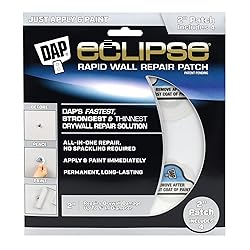 • Eclipse Rapid Wall Repair Patches are a unique and innovative drywall repair solution that is perfect for completing permanent repairs on damaged walls and ceilings. No more waiting for spackling to dry or messy sanding. DAP Eclipse allows you to patch drywall damage and paint immediately, allowing you to finish your project faster. This all-in-one, mess free solution not only provides a permanent, long-lasting repair but also superior impact resistance for areas that may see reoccurring impact, such as behind doors.
