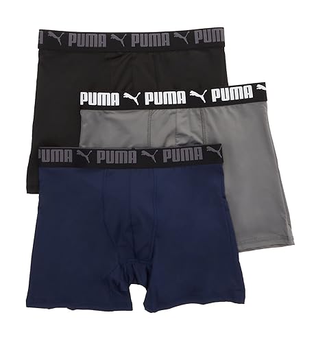 BOXER BRIEF 3-PACK: The essential 3-Pack Athletic Fit Boxer Brief from PUMA is engineered for working out or just being on the go. An ergonomic design keeps these boxer briefs in place and on high performance BUILT FOR PERFORMANCE: We created these PUMA boxer briefs with quick-dry, moisture-wicking fabric, so you can experience cool comfort no matter what you’re up to. Soft stretch fabric moves with you, so feel free to lunge, leap, reach, lounge GREAT FIT AND FEEL: Regular fit boxer brief from PUMA is designed to go the distance. A soft, non-constricting waistband creates that perfect intersection of style and comfort. Flatlock seams offer a high-performance wear without chafing. PERFORMANCE MATERIAL: With 85% polyester and 15% spandex, you know you've got easy wear that's engineered to repel water and stay dry. GO FOR THE PACK: The essential 3-Pack Athletic Fit Boxer Brief from PUMA is an excellent choice for high-performance activity and all-day comfort.