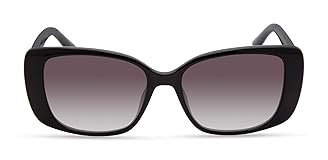 RECTANGULAR FRAME STYLE: Sleek rectangular silhouette delivers a modern, streamlined look for women’s sunglasses GLITTER LOGO DETAILS: Shiny black frame features gold triangle logo décor with subtle glitter accents GRADIENT FLASH LENSES: Grey gradient lenses with gold flash provide stylish sun coverage UV EYE PROTECTION: Lenses provide 100% UVA and UVB protection for everyday outdoor wear LIGHTWEIGHT COMFORT FIT: Plastic frame and temples support comfortable all-day wear