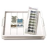 GET EVERY BEAD ORGANIZE: Bundle featuring the Elizabeth Ward Bead Storage Solutions Plastic Organizer Tray with Lid and 58 Assorted Storage Containers 2 PIECE DESIGN: Keep your jewelry-making supplies organized in this bead and craft supply storage tray with lid MODULAR DESIGN: Empty sorting tray lets you choose the right sized container for your craft and bead storage needs STACKABLE STORAGE: Stackable bead storage tray helps keep your beads and supplies neatly and 1 spot 58 INDIVIDUAL CONTAINERS: Use the 58 clear plastic containers individually or pair them with other Elizabeth Ward Bead Storage Solutions trays
