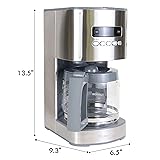 LARGE 12-CUP CAPACITY - Brew up to 1.8 liters (1.9 quarts) of coffee into the dishwasher-safe glass carafe. For smaller servings, select the 1-4 cup mode. This versatile Kenmore Coffee Maker is Impeccable for both large gatherings & personal use, ensuring you always have the right amount of coffee. PAUSE & SERVE FUNCTION - An automatic interrupter stops the coffee flow for up to 20 seconds if the carafe is removed. This feature allows you to pour a quick cup without waiting for the entire brewing cycle to finish, making your morning routine more efficient. PROGRAMMABLE TIMER - Set the timer the night before using the intuitive digital controls & clear LCD display. Wake up to the delightful aroma of freshly brewed coffee. This programmable feature adds convenience to your busy mornings, ensuring you start your day with ease. BOLD FLAVOR BREWING - When making a full pot of coffee, the 1-4 cup button doubles as a "bold" setting. It slows the water flow & steeps the grounds to enhance the flavors before releasing the coffee. This process results in a stronger, richer taste, perfect for those who prefer a robust cup of coffee. WATER PURIFIER & REUSABLE FILTER - The 12-cup coffee maker includes a charcoal water filter to remove impurities from your tap water. Additionally, it comes with a reusable gold-tone cone filter that is cost-effective & ensures you get the best-tasting coffee while being kind to your wallet.