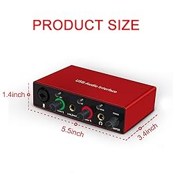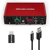 Interfaz de audio USB C Interfaz de audio de grabación de alta definición: 24 bits, 96 kHz, interfaz de audio USB 3.0 2x2. La mejor opción para músicos y podcasters móviles, esta interfaz de audio 2x2 funciona con USB C, es compacta, tiene un diseño robusto y funciona con prácticamente cualquier software de grabación de PC o Mac. Cuenta con preamplificadores de micrófono de clase A de alto rendimiento y convertidores de 24 bits y 96 kHz de calidad profesional para Mac y Windows. Preparación 1. Primero, conecte esta interfaz con el cable USB tipo C incluido en el paquete y conéctela al ordenador (asegúrese de que el puerto USB del ordenador pueda suministrar energía y transmitir datos con normalidad). 2. Ajuste las tres perillas al menos al engranaje intermedio. A continuación, haga clic en las tres teclas táctiles para asegurarse de que todas las funciones estén activadas. 3. Conecta el cable XLR y el cable de los auriculares para iniciar la grabación. NOTA: No se incluye el software de grabación DAW, debe descargar el software de grabación usted mismo. Contenido del paquete: 1 x interfaz de audio USB 1 x cable USB tipo C. 1 x manual de usuario 1 x adaptador USB C a USB.