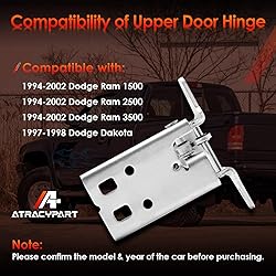 - Features: ——Easy to Install ——Excellent Value ——Direct Replacement ——All products have been 100% Tested before shipment Package include: 1* Left Front Upper Door Hinge Replacement for Dodge: 1994-2002 Dodge Ram 1500 1994-2002 Dodge Ram 2500 1994-2002 Dodge Ram 3500 1997-1998 Dodge Dakota