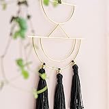 - Material: Cotton, Iron cover with golden powder Color: Black, Gold Package: 2 Pcs Size: 12.6''H x 7.6''W and 11.5''H x 5.9''W Designed with simple style, this small macrame piece will look great in different modern interiors concepts: bohemian, scandinavian, rustic, contemporary and others. It will decorate your sweet home or another lovely place! This little piece is great for giving your home decor, bohemian edge, or would be elegant for an addition to your wedding decor and would match perfectly with your furniture.