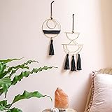 These cute macrame wall hangings come with beautiful delicate detail and gorgeous fringes. they are great for bed headboard, over the fireplace, gallery wall, workspace or anywhere where you'd like to adding a cozy touch to your living or work space. Unique Design: The design conbines high quality iron with golden powder cover and handmade cotton tassels. Bohemia style wall hangings are great decoration for any space. And they will match well with your home style as well. Elegant Decor on Wall: It looks more gorgeous on the wall, Beautiful wall art creates a sense of harmony and comfort for your room. It is great for a bedroom, living area, baby nursery, workspace or anywhere where you'd like to bring some texture and interest to your walls. Ideal Gift: It will be a beautiful and practical gift for your family or friends, also great for housewarming, birthday, wedding, Christmas, Mothers day and more! Size and Package: 12.6''H x 7.6''W and 11.5''H x 5.9''W (from the top of the ring to the bottom tassels). 2 pack a set, come with different pattern and bring different decor effect to your space. And they are protected by intellectual property right.