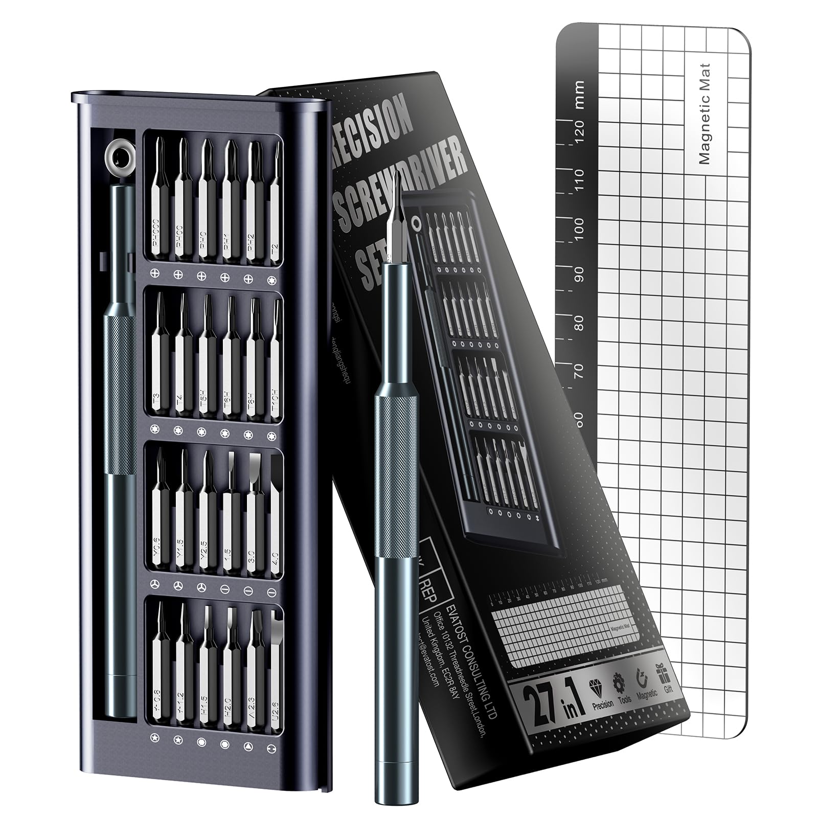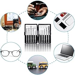 【11Different Size】: 3Pcs phillips sizes (#00, #0, #1); 6Pcs flathead sizes (1.0mm,1.2mm,1.4mm, 1.8mm, 2.4mm, 3.0mm); 1 Awl; 1 Magnetic; The mini screwdriver set is a good choice for watch, electronics, eyeglass repair and other small screw fixation 【Easy to Carry Case】 Our precision screwdriver set is equipped with a plastic storage box to keep the screwdriver set organized.A must-have gadget for travel! 【Rust Proof Blades】Our small screwdriver set is designed to extend the service life and durability of the hard tempered black oxide shaft.Worth having! 【Rotating Grip Design】The gaps of the precision screwdriver set are tightly combined during use, and the hand feels comfortable. Is the perfect eyeglass repair kit! 【Micro Screwdriver Set】 Whether you're a professional fixer or a home repair hobby, this micro screwdriver set has what you need to disassemble, repair, and reassemble phones, game consoles, wearables, laptops, desktops, tablets and much more!