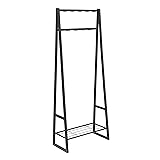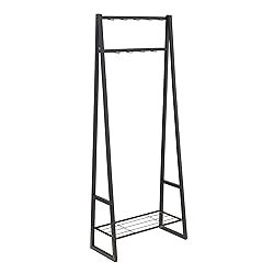 With a simple, vintage design that's both sleek and elegant; built with a strong steel frame and sturdy metal shelves for functional storage All-in-one construction with a coat rack and shoe storage shelf; includes 9 hooks for bags and scarves and 1 shelf for shoes This decorative yet practical piece fits snugly into corners to make the most of limited space; perfect for hallways, entryways, foyers, bedrooms, etc Quick and easy to assemble with numbered parts and detailed instructions; it takes just 5 minutes to put together Warning: contains BPA Dimension: 27.6 x 13 x 69 inch (L x W x H)