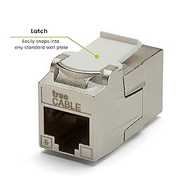 MAXIMUM PERFORMANCE. Supports 100BASE-TX, 1000BASE-T, 2.5GBASE-T, and 5GBASE-T up to 5 Gbp/s in 328 foot channels. Supports Power over Ethernet: PoE/PoE+/PoE++ (IEEE 802.3af/at/bt) 4PPoE up to 100W. Impedance matching technology. EASY TO USE. Our 180° RJ45 to RJ45 feed through keystone jack couplers are designed for quick and painless installations. The reusable keystone jack design makes it easy to disconnect and relocate as needed. VERSATILE. 100% compatible with any standard wall plate or patch panel.Ultra durable nickel plated zinc housing offers outstanding shielding and an effective method for reducing alien crosstalk from neighboring connectors. Works with shielded and unshielded Ethernet cable. QUALITY GUARANTEED. ANSI/TIA 568 2.D Cat6 Permanent Link & Channel Certified up to 5 Gigabit by trueCABLE. UL Listed, ETL Verified, TAA compliant, and RoHS-2 compliant. Tested in the real world by real installers. Backed by our FOREVER WARRANTY. 2 PIECE BOX. These durable and time saving female to female keystone RJ45 couplers are sure to make your install hassle-free. No tools required.