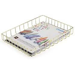 Desktop Organizer: This tray designed for home or office storage. Perfect to organize letter sized papers, such as files, mails, magazines, notebooks, postcards, idol albums etc. Also can be used to store makeup vanity or bathroom accessories. Durable and Elegant Letter Tray: this desk letter tray is made of fine plated metal, sleek and well finish, gold and rose gold colors available, is easier to maintain, easier to be cleaned and ensures a larger view for fast access , so uplifting in your office setting. Enough Capacity:12.6" x 9.6" x 1.8"(Lx Wx H),the multifunctional basket tray can provide enough capacity to hold your documents and other desk supplies, while does not take too much room. Multifunction Desk Tray: Organize Your Documents, Letters, Mail, Inbox, Toiletries, cosmetics , keep office desktop, work top, tabletop and countertop pretty and stylish. Nice Gift Choice - Say goodbye to the clutter of life. Definitely a trusted file organizer tray to replace dull mesh file holders or plastic desk trays, let’s organize papers in an easy, cozy & creative way!