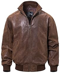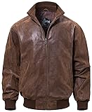 [Material] Fabric: 100% Genuine leather. The inside lining is made of skin-friendly polyester, combined with high-quality leather to keep it breathable and comfortable. [Wind Resistance Features] This men's bomber jacket has a zip closure and hip length that give it high wind resistance. For a customized fit and warmth, it also has an inner rib stand collar, adjustable cuffs, and a hem. [Occasions]A timeless leather jacket for daily wear, work wear, dates, bike, motorcycle, outdoor.It is also a perfect gift for boyfriend/husband/father/son. [Multi Pockets] This casual coat has 2 pockets at the waist and 2 interior pockets that provide storage for multiple items like a wallet, phone, or cards. [Size Chart] Please select the appropriate size based on the size measurements provided in the product description.
