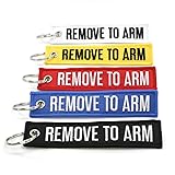 - Our REMOVE TO ARM Keychains are 100% embroidered, with merrowed borders. Keyring is nickel plated for long lasting durability. These keychains would look great on your firearms case.Large embroidered letters are 5/8 inch tall, or 15mm.