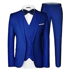 MAGE MALE Men's 3 Pieces Suit Elegant Solid One Button Slim Fit Single Breasted Party Blazer Vest Pants Set