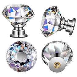 Sufficient quantity: you will get enough crystal drawer knobs, enough quantity to meet your daily needs or sharing, with 1.18 inches (30 mm) diameter, nice comfortable size for kids small hands and adult large hand Durable sturdy crystal material: these crystal drawer knobs are made by crystal glass and zinc alloy, with a sturdy structure, nice feel in hand, and shiny and glittering appearance, which will make your home and office more beautiful Easy to Install: Find the place where you want to install on the board and drill a hole, then pass through the screw from the back of board, and tighten the knobs from the other side, each of cabinet knob individually packed Shinny and elegant design: they are shiny and look very beautiful, which will add a magical effect in your home or office decorating, complete your kitchen remodel or DIY dresser with ease and trend-forward designs Wide applications: classic knob style, with a beautifully faceted crystal topper, pretty artistic and durable, which are ideal for cabinet, dresser, drawers, cupboards, wardrobes, bookcase, kitchen, bathroom, living-room, book-room, dorm and office