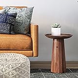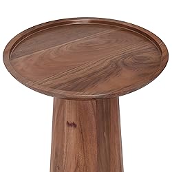 DESIGNED TO FIT WITH EASE: Measures 13"D x 13"W x 19"H, making it suitable for smaller spaces and low-profile seating arrangements. SOLID WOOD CRAFTSMANSHIP: Handcrafted from premium solid acacia wood with a light cognac hand-applied finish that accentuates the natural texture. FUNCTIONAL SURFACE: Provides a practical tabletop perfect for holding beverages, phones, or decorative pieces in various room settings. SCULPTURAL DESIGN: Features an organic curved form with a distinctive textured finish that complements contemporary, industrial, and eclectic interiors. FULLY ASSEMBLED: Delivered ready to use, eliminating any setup time so you can immediately enjoy its unique aesthetic.