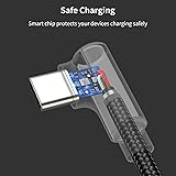 Right Angle Design: 90 degree 6.6ft usb-c cable is perfect for unhindered gaming while charging. It's designed to avoid bending the cable, protect the lightning connector and cable exterior, increase the lifespan. 3A FAST CHARING & SYNC: Support quick charge (QC 3.0), A maximum output of 60W allows for high-speed charging. including a 56kΩ resistor protect your devices from damage. Comply with USB 2.0 standard, supports data transmission speed up to 480Mbps(60M/s). ENHANCED DURABILITY: Tangle-free braided design, premium aluminum alloy shell add extra durability and stability to this cable, making it more durable than normal USB C cables. This short USB C cable can bear 10000+ bending test. WIDE COMPATIBILITY: Suit for the devices with USB C Port, Like Samsung Galaxy S20/S20+ Ultra S10 S10E S9 S8 Note 20 10 9 8, Moto Z/Z2, LG Stylo 6 5G V20/V30/V40 and new USB-C devices. WHAT YOU GET: 3 x 6.6ft USB A to USB C cable, with our 12-month product replacement warranty and lifetime 7*24h friendly technical support.