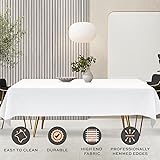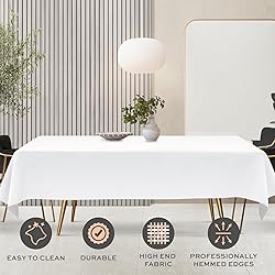 Tablecloth for rectangle tables - 60 x 84 inch Fitted White Table Protector with 15 inch drop if use for 4 foot dining Table; 100% Polyester 200GSM tablecloths fabric is durable and can withstand multiple washes; Seamless Design & Wrinkle Free Convenience - Durable Stain resistance and Wrinkle Free Design make use easier than most cotton & linen Cloths; Elegant Hemmed Edges and Seamless Construction of white table cloths make it the perfect choice for every family; Fitted for 4 foot table - Versatile White Rectangle Shaped Table Cloth fits most folding buffet tables, outdoor camping table or picnic tables, dining tables, kitchen tables; Can be used for home dining, buffet, wedding, restaurants, and any other indoor or outdoor events; Protection - The Washable Fabric Tablecovers protect tables from juice, red wine, oil, spilled drinks, food scraps and can be used multiple times. Set of 2 ensures you always have an extra one white table cover; Easy To Care - Easy to clean, machine washable and hand washable, tumble dry low, simply iron after cleaning to remove wrinkles if needed, do not bleach.