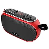 Supersonic SC-1444BT Portable Bluetooth Speaker with Hands-Free Calling, LED Clock Display, FM Radio, USB & Micro SD, Rechargeable Battery, Recording, Repeat & Memory Features (Red)