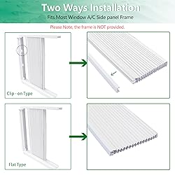 Energy Saver - This window air conditioner side panel is design to prevent air leakage along sides of window AC unit, keep cool air in summer and keep warm air in winter, improve comfort and energy efficiency Upgraded Double Layers - Made of high quality vinyl, durable for long term use. Upgraded double layers for better insulation, dust-proof, and wind-proof. It also helps reduce noice, and eliminate light Universal Fit - Our ac side panels fit openings up to 17 inch high, each panel extends up to 10 inch wide, can be cut to fit the size with hand saw. Suitable for most window air conditioner of 5,000 to 20,000 BTU Easy Installation - The window ac side panels adapt to both "clip-on type" and “flat type” window frame. Comes with self-adhesive channels, sealing foam tape and hand saw, easy to install Package Includes - Pack of 2 window ac side panels, 1 x hand saw, 1 x insulation brush strip, 1 x instruction sheet. For any questions, please feel free to contact us