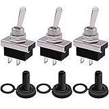 weideer 3Pcs Waterproof Toggle Switch 12V 25A 2 pin 2 Position SPST ON/Off Toggle Switch with Waterproof Cover for Auto Car KN3D-101