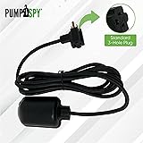 - PumpSpy goods are proudly assembled in the United States. This switch is constructed with gold-plated electrical connections resistant to accelerated pitting and wears, and it senses changes in water level, enabling its automatic on/off switch feature. It is simple to install and can be used with sump, sewage, or effluent pumps. It has everything you need to start quickly, including a hose clamp and a cable grip. This switch assists in providing convenience and peace of mind with its superior modular design, a 10-foot cord with lots of versatility, and a piggyback plug that help ensure a safe and efficient universal connection!