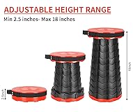 Excellent Load Bearing: The environmentally friendly material plastic makes the stool have excellent mechanical strength. The maximum load capacity is as much as 350 lbs! Safe & Sturdy, Non-slip base ensures the stability of the collapsible stool Latest Portable stool: The unique locking clasp system allows the folding stool to open and close easily in just seconds, and it locks firmly in place once opened. Even a child can do it quickly and easily! you will obtain 2 stool Portable,Lightweight:Diameter and height in the closed state are 10" and 2.4" of this retractable stool, weight is 2.54 lbs. You can carry it in your hand or hanging on your shoulder with the adjustable two straps Dimensions: diameter 9.84 inch, storage height 2.36 inch, unfolding height 18.11 inch. It's quickly and easily folds away for convenient storage and the fold of the collapsible/retractable stool is that its height is adjustable A Great Gift Idea: The Retractable Portable Stools are specially designed keeping your outdoor activities in mind, its multi-scenario capabilities make it a great gift idea for friends, family and loved ones for holidays or any occasions