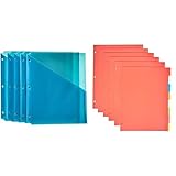 Amazon Basics Binder Organizer Poly Jacket, 3 Hole Punch, Assorted Colors, Pack of 25 & 3 Ring Binder Dividers with 8 Tabs, Pack of 6 Sets