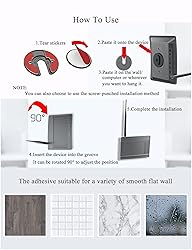 Rotating Design: The tablet mount can rotate 90 degrees to adjust the angle according to your needs. Easily adjust the Angle of the screen to suit your vision. Broad Compatibility: ipad wall mount Compatible With E-reader/Kindle/iPad Air Mini Pro/WIFI Router /Cable Box/ tv box/ipad Accessories. Hidden Storage Mount: Backpack of iMac&laptop display hidden storage for hard drive/wi-fi router/power bank/cell phone&other device,or hidden the cable box/ wi-fi router on the back of the tv. Two Kinds of Installation Methods: screw and adhesive,the tablet holder that you can choose which way to install according to your requirements. Tips: If you choose to use adhesive to install the bracket, please wait for 24-48 hours after installation before using the bracket, the adhesive works best. Multiple Usage Scenarios: ipad accessories fits on kitchen/bathroom/bedroom/readingroom/living room and More. What do you get:Tablet wall mount*2(set), Round adhesive*3, Crescent shaped adhesive*6, Screw*4, Rubber plug*4, The bracket is made of plastic.