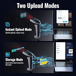 Larger battery enables longer continuous usage and twice the stand-by time. With the unique battery indicator light showing the remaining battery level, no more Low Battery Anxiety. The curved handle is extended and widened. With specially designed smooth and flat trigger for a better grip. The grey anti shock silicone protective cover can prevent scratches and friction even when dropped from up to 6.56 feet. IP54 technology protects the wireless barcode scanner from dust. Plug and play with the USB receiver or the USB cable, no driver installation needed. Easy and quick to set up. Wireless transmission distance reaches up to 328 ft. in barrier free environment. [ Note: The Model 5100 is a 1D barcode scanner that exclusively scans 1D barcodes and is not compatible with 2D QR codes or codes displayed on digital screens. It operates using a 2.4G wireless connection and does not support Bluetooth.] Supports almost all 1D Barcodes: Febraban Bank Code, Codabar, Code 11, Code93, MSI, Code 128, EAN-128, Code 39, EAN-8, EAN-13, UPC-A, ISBN, Industrial 25, Interleaved 25, Standard 25, Matrix. Reads damaged, fuzzy, reflective and smudged barcodes.