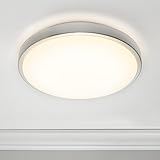 - This dimmable 14” round LED ceiling light has a classic design that makes it the perfect complement to any décor style. It features a brushed aluminum trim (similar to brushed nickel) and a white lens, which evenly distributes its 1600 lumens of 3000K warm white light output throughout the room. It is energy efficient and makes a great addition to any room in the house. It uses only 20 watts of energy, equivalent to a 100W incandescent light. It is an integrated LED fixture so you will never have to change a light bulb and it is rated for 50,000 lifetime hours. This close-to-ceiling LED fixture is ETL listed and comes with a 3-year warranty.