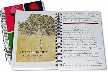 • This wine tasting journal is the perfect companion for wine enthusiasts looking to document and refine their palate. The spiral-bound notebook features a vibrant pop art wine glass cover design that adds a touch of style to your wine exploration journey. Inside, you'll find structured pages designed specifically for recording detailed tasting notes, including sections for wine name, vintage, region, grape variety, and distributor information. Each page includes a comprehensive assessment system where you can rate color, appearance, taste spectrum, body, balance, finish, and overall experience on easy-to-use scales. The journal also features a helpful flavor wheel reference guide that assists you in identifying and articulating the complex tastes and aromas you encounter, from tropical fruit notes to oak and spice characteristics. Whether you're attending wine tastings, building your collection, or simply enjoying wines at home, this notebook helps you track your preferences, remember standout bottles, and develop your wine knowledge over time. The durable spiral binding allows the journal to lay flat for convenient note-taking, while the compact size makes it easy to bring along to wineries, restaurants, or tasting events.