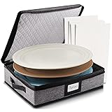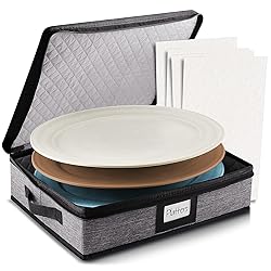 Fabric Fine China Storage Containers, Hard Shell: Protect your glass or china serving platters from dust, moisture, chips, scratches, or accidental impacts that can damage or break them. Platter Storage Case: This tray storage container fits 4 wide platters and measures 16” x 12.5” x 3.5”. Padded and Secure: Soft felt tray dividers allow for organized stacking while preventing the platters from knocking against each other. The padded, quilted interior protects and cushions your dishes, while the stiff exterior prevents squashing during storage or transport. Convenient and Stylish: Our dish storage protectors boast sturdy handles, zippered lids, and faux leather label slots for neat, elegant kitchen organization and storage. High-Standard Service: At StorageBud, we value your satisfaction. That’s why we create top-of-the-line dish organizer sets that are safe, aesthetically pleasing, and dependable year after year.
