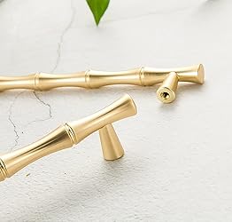 ESreake 6Pcs Bamboo Shape Solid Zinc Alloy Cabinet Knobs Handles, Dresser Drawer Cabinet Cupboard Closet Door Pulls Decorative Furniture Accessories Knobs (Length 6.1"/Hole Distance 5", Golden)