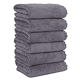 MOONQUEEN 6 Pack Premium Hand Towels - Quick Drying - Microfiber Coral Velvet Highly Absorbent Towels - Multipurpose Use as Hotel, Bathroom, Shower, Spa, Hand Towel 16 x 28 inches (Gray)