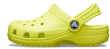 ALL-DAY COMFORT: Let your child's feet experience ultimate comfort with the Crocs Kids Classic Clog. Constructed from lightweight Croslite material, these kids clogs ensure a comfortable fit for all-day wear. The synthetic lining and insole provide additional cushioning, making them perfect for active kids who are always on the go. The ergonomic footbed conforms to the foot, creating a custom fit that enhances comfort and support with every step. SUPERIOR BREATHABILITY: Featuring an advanced toe-box ventilation system, these stylish clogs keep little feet cool and dry. The breathable design allows for maximum airflow, preventing overheating and ensuring a comfortable feel throughout the day. Ideal for both indoor and outdoor activities, these clogs are perfect for summer adventures and casual playdates. VERSATILE AND STYLISH: The Crocs Kids Classic Clog pairs well with all fashionable attire, offering a versatile and updated style. The sleek white color adds a modern touch, making these versatile clogs a stylish choice for any occasion. Whether your child is heading to the beach, or park, or just hanging out at home, these clogs provide a trendy yet functional footwear option. SECURE AND ADJUSTABLE FIT: Designed with a slingback strap, these clogs offer a secure and adjustable fit. The strap can be moved to the front for easy slip-on wear or positioned at the back for added stability, ensuring the durable clogs stay in place during active play. The round toe shape provides ample room for growing feet, promoting natural movement and comfort. DURABLE AND WATERPROOF: Crafted with an EVA upper and outsole, these comfortable clogs are both waterproof and incredibly durable. The treaded outsole offers excellent traction on various surfaces, providing stability and preventing slips. Easy to clean and quick to dry, these clogs are perfect for water-based activities and messy adventures, making them a practical choice for busy parents and active kids alike.