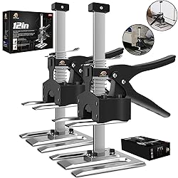 UPGRADED MULTIFUNCTIONAL JACK — Wall tile leveling device, the height can be easily adjusted by pressing the handle. All steel floor super high quality force arm is used for lifting, pressing, precise fastening and control. height adjustment, accurate positioning, fast lifting ALL STEEL SOLID BASE — Load-Bearing And Durable: Innovative lifting tool, thickened double clip solid steel bottom plate, stable center of gravity, Two are used at the same time, bearing 450 pounds, and 6.69 inches of lifting capacity through handle adjustment spring. Selected high strength spring, longer service life COMFORTABLE HANDLE — Precision Controllable: comfortable handle, hand-held design, grip handle can quickly rise. Press the plate gently to lower quickly. It can help the installation personnel to complete the work easily, relieve fatigue and work efficiently WIDE USE, EASY TO CARRY — the multi-functional force arm can be used in various scenes. The installation of doors and windows and the installation of cabinets, floors, porches, decks and frames are small in volume and light in weight. The tile lifter is easy to carry and use. It's the best way to give away MULTI-BOARD WOODWORKING CLAMP — The ingenious design also doubles as a versatile woodworking clamp, allowing you to securely clamp multiple boards together for gluing, sanding, or any precision woodworking task. It ensures a tight, even hold for flawless results.