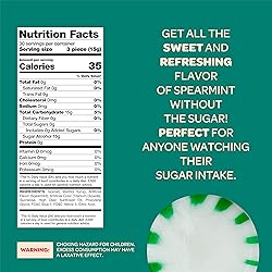 Sugar Free Starlight Mints Spearmint Hard Candy; 1-pound pack; approximately 90 pieces per order This sugar free hard candy is a delightful alternative to traditional Starlight Mints Spearmint Candy Each irresistibly delicious piece is individually wrapped for convenience and is bursting with refreshing mint flavor These mints make the perfect after-dinner companions; they cleanse the palate, leaving you with a feeling of crisp refreshment that lingers long after the candy has dissolved Warning: Excess consumption may have a laxative effect
