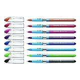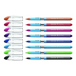 - The Slider® Basic ballpoint pen features Viscoglide® ink technology for an extraordinarily smooth writing experience and a wear-resistant stainless steel tip to enhance ink flow, while preventing the possibility of tip-grind when moving along the page. Ink dries quickly and resists smudging, even when highlighted. Rubberized grip delivers a more secure hold and helps reduce hand fatigue during longer writing sessions. Transparent cap with clip and handy ink-color indicator fits neatly on the end of the barrel. Produced CO2 neutrally.