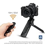 Replacement: The detachable remote replaces Nikon ML-L7 Bluetooth Remote. Ideal design to combine the shutter trigger and shooting grip into one. Remote Functions: Image shooting, video recording, zooming, manual focus adjusting, applications selecting and Fn1/Fn2 button assigning. (Note* The Fn1 and Fn2 buttons on the remote control are compatible with Nikon Z50 and COOLPIX P950 cameras only.) 360° Pan and 180° Tilt: The tripod grip enables the camera to rotate 360° left or right, tilt forward 90° and back 90°, making it easier to capture quality video content from high and low angles and even in selfie mode. The grip can also be set up as a tripod, enabling landscapes and group shots to be captured with ease. Stable and Easy to Access: The thumbwheel design allows to remove and mount the gear in a fast way. The shooting grip with the non-slip pads on each leg enhance the grip and improve the stability. Camera Compatibility: The shooting grip can fit on Nikon Z50, Z50 II, Z30, Zf, Zfc, Z7 II (Ver.1.4), Z6 II (Ver.1.4), COOLPIX P1000, P950, A1000 and B600.