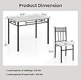 Complete 5-Piece Dining Set: Includes 1 rectangular dining table and 4 high-back chairs—perfect for family meals or gatherings in kitchens, dining rooms, or small spaces. Comfortable High-Back Chairs: Designed with ergonomic curved backs and high-density sponge seats, these chairs provide strong support and lasting comfort for relaxed dining. Durable & Strong Build: Made with high-quality steel pipes, the table supports up to 110 lbs, and each chair holds up to 220 lbs, ensuring long-lasting use. Space-Saving Design: The chairs are sized to fit neatly under the table when not in use, helping you maximize your space effortlessly. Easy to Assemble: Comes with all necessary accessories and straightforward instructions, making setup quick and hassle-free.