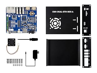 • Overview Dual Gigabit ETH Computer Based On Raspberry Pi CM4 (NOT Included), Designed For Raspberry Pi CM4, Waveshare CM4 Dual Gigabit Ethernet Base Inside, Metal Case, with Cooling Fan, Make It Easy To Build Your Own Raspberry Pi CM4 Mini PC CM4-DUAL-ETH-BASE Specifications 1. CM4 SOCKET: suitable for all variants of Compute Module 4 2. ETHERNET: Dual Gigabit Ethernet RJ45 3. USB: USB 3.2 Gen1 × 3 4. PIN HEADER: 40PIN GPIO header × 1 5. HDMI: HDMI × 2, supports 4K 30fps output 6. DSI DISPLAY: MIPI DSI display port × 1, 15pin 1.0mm FPC connector 7. CSI CAMERA: MIPI CSI-2 camera port × 2, 15pin 1.0mm FPC connector 8. POWER INPUT: 7V-36V 9. FAN: 5V/12V, allows speed adjustment and measurement 10. RTC: Real-time clock with battery socket and ability to wake Compute Module 4 11. SD CARD SLOT: MicroSD card socket for Compute Module 4 Lite (without eMMC) variants 12. DIMENSIONS (MM): 109.0 × 91.5 Package content 1. CM4-DUAL-ETH-BASE x1 2. Metal case (top and bottom) x1 3. Fan-4010-PWM-12V x1 4. Screwdriver x1 5. Screws pack x1 6. 12V 2A power adapter x1 Note Development Resources and Technical Support are provided, please feel free to contact us if you have any problem!