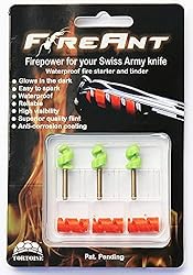 - The FireAnt is a patented fire starting tool that fits into the corkscrew of Victorinox Swiss Army Knives. Paired with the included Helix Tinder these make a complete and 100% waterproof fire starting system. A true life saving tool! One FireAnt can last for several hundred fires when used with Helix Tinder. Helix Tinder Helix Tinder is a patent pending wax impregnated waterproof fiber tinder that integrates with the FireAnt into the corkscrew. Each Helix Tinder can be cut or pulled apart and used for multiple fires. Glow in the Dark: The FireAnt glows in the dark to help you locate your knife at night. 100% Waterproof: The FireAnt and Helix Tinder are 100% waterproof and have been tested to work even after being submerged in water for over 4 months! *The FireAnt fits into all modern Victorinox Swiss Army knives, but may not fit into older grooved style corkscrews.